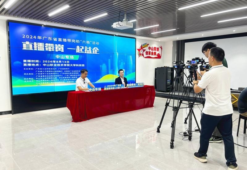 8月13日上午,由廣東省工業(yè)和信息化廳、廣東省教育廳、廣東省人力資源和社會保障廳、共青團廣東省委員會共同主辦,廣東省中小企業(yè)服務(wù)中心、廣東省就業(yè)服務(wù)管理局、廣東省青年創(chuàng)業(yè)就業(yè)促進中心、廣東經(jīng)濟科教頻道共同承辦,中山市工業(yè)和信息化局、中山市退役軍人事務(wù)局聯(lián)合協(xié)辦的“2024年廣東省直播帶崗助‘六穩(wěn)’活動——‘直播帶崗 一起益企’(中山專場)”,在中山職業(yè)技術(shù)學(xué)院大學(xué)科技園內(nèi)的軍創(chuàng)企業(yè)中??萍迹◤V東)有限公司舉辦。