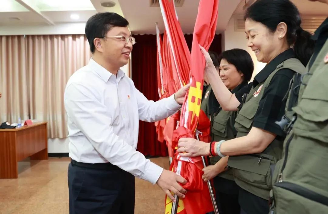 同時,還為全市26支退役軍人紅旗志愿隊進(jìn)行授旗。