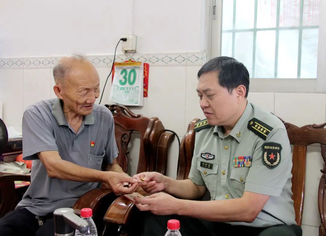 在“八一”建軍節(jié)即將到來(lái)之際,7月30日上午,市委常委、中山軍分區(qū)政委劉燦瑩來(lái)到橫欄鎮(zhèn),走訪慰問(wèn)部分退役軍人,為他們送去黨和政府的親切關(guān)懷,祝福他們建軍節(jié)快樂(lè)、身體健康、家庭幸福。鎮(zhèn)領(lǐng)導(dǎo)林培華、葉劍榮、高桂冰等陪同慰問(wèn)。 周七友,今年80歲,是橫欄鎮(zhèn)橫東村一名有著54年黨齡的退伍老兵。1959年,18歲的周七友參軍入伍,成為一名軍人。1968年,周七友光榮退伍。 1959年到1968年,周七友獲得了許多獎(jiǎng)項(xiàng)與勛章,這些勛章他都悉心保存,非常有意義和價(jià)值。 “這幾枚是'五好戰(zhàn)士'稱號(hào)徽章。當(dāng)年戰(zhàn)士們積極響應(yīng)黨中央號(hào)召,爭(zhēng)當(dāng)'五好戰(zhàn)士'。'五好'是指:政治思想好,三八作風(fēng)好,軍事技術(shù)好,完成任務(wù)好,鍛煉身體好”,多年過(guò)去了,周七友還清楚記得“五好”的具體內(nèi)容?!斑€有這一枚是‘技術(shù)能手’稱號(hào)徽章,當(dāng)時(shí)我能夠熟練地拆裝一整部車,所以就獲得了這枚‘技術(shù)能手’稱號(hào)徽章。這枚徽章我們一個(gè)班只有我獲得了?!?/p>