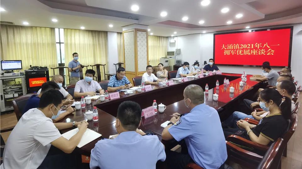 大涌鎮(zhèn)召開2021年“八一”擁軍優(yōu)屬座談會。鎮(zhèn)黨委書記王英康,鎮(zhèn)黨委副書記、鎮(zhèn)長李家豪,鎮(zhèn)黨委副書記劉文生,副鎮(zhèn)長余添宏及相關(guān)部門負責(zé)人參加了座談。