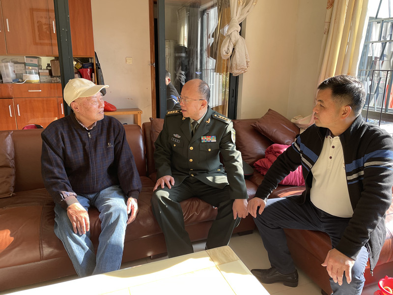 迎新春,送溫暖。1月19日,中山軍分區(qū)、中山市退役軍人事務局到南區(qū)街道聯(lián)合開展2023年春節(jié)走訪慰問活動,慰問因公十級殘疾軍人和現役軍人家屬,向他們致以新春的問候和美好祝愿。中山軍分區(qū)大校司令員李云濤參加慰問。 李云濤一行先后來到現役軍人家屬曹軍民和因公十級殘疾軍人胡華銀的家中,為他們送去慰問金和大米、食用油、面條、春聯(lián)等慰問品,并送去新年的祝福和關懷。 在現役軍人曹秦的家中,李云濤感謝其家人為部隊輸送了優(yōu)秀人才,為國防建設作出了突出貢獻。據了解,曹軍民的兒子曹秦于2022年9月入伍,服役于新疆烏魯木齊武警總隊。曹軍民表示,非常感謝黨和政府對現役軍人家庭的關心,把孩子交給部隊很放心。  ▲李云濤一行慰問84歲高齡的老兵胡華銀(左一)。 記者 張倩 攝