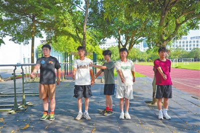 鐘鑫引導(dǎo)同期參軍的另外4名大學(xué)畢業(yè)生進(jìn)行體能訓(xùn)練。記者 易承樂 攝