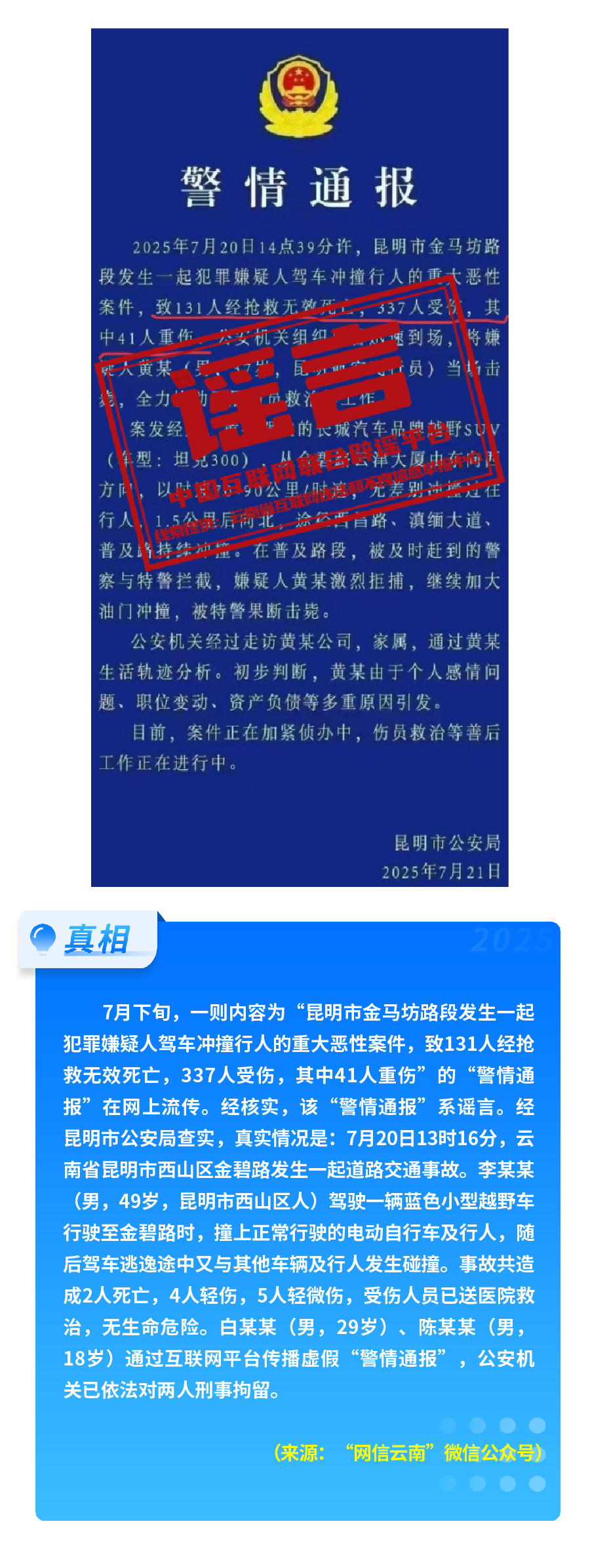 云南昆明駕車沖撞致131人經(jīng)搶救無效死亡?