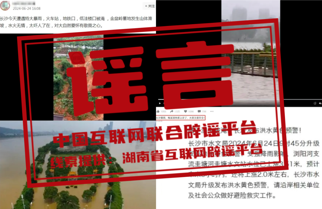 謠 言  長沙暴雨致橘子洲頭被淹?金盆嶺烈士陵園坍塌?梅溪湖的魚都上岸了?