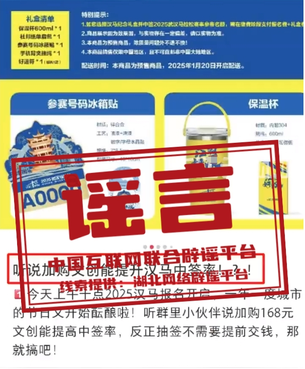 謠 言 加購武漢馬拉松文創(chuàng)禮盒可提高中簽率?