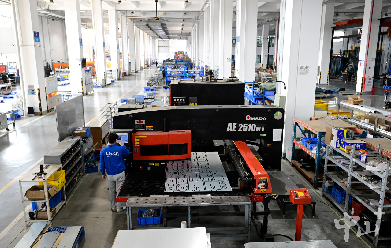 卓梅尼集團車間,大型的數(shù)控沖床正在忙個不停地工作。(資料圖)記者 余兆宇 攝
