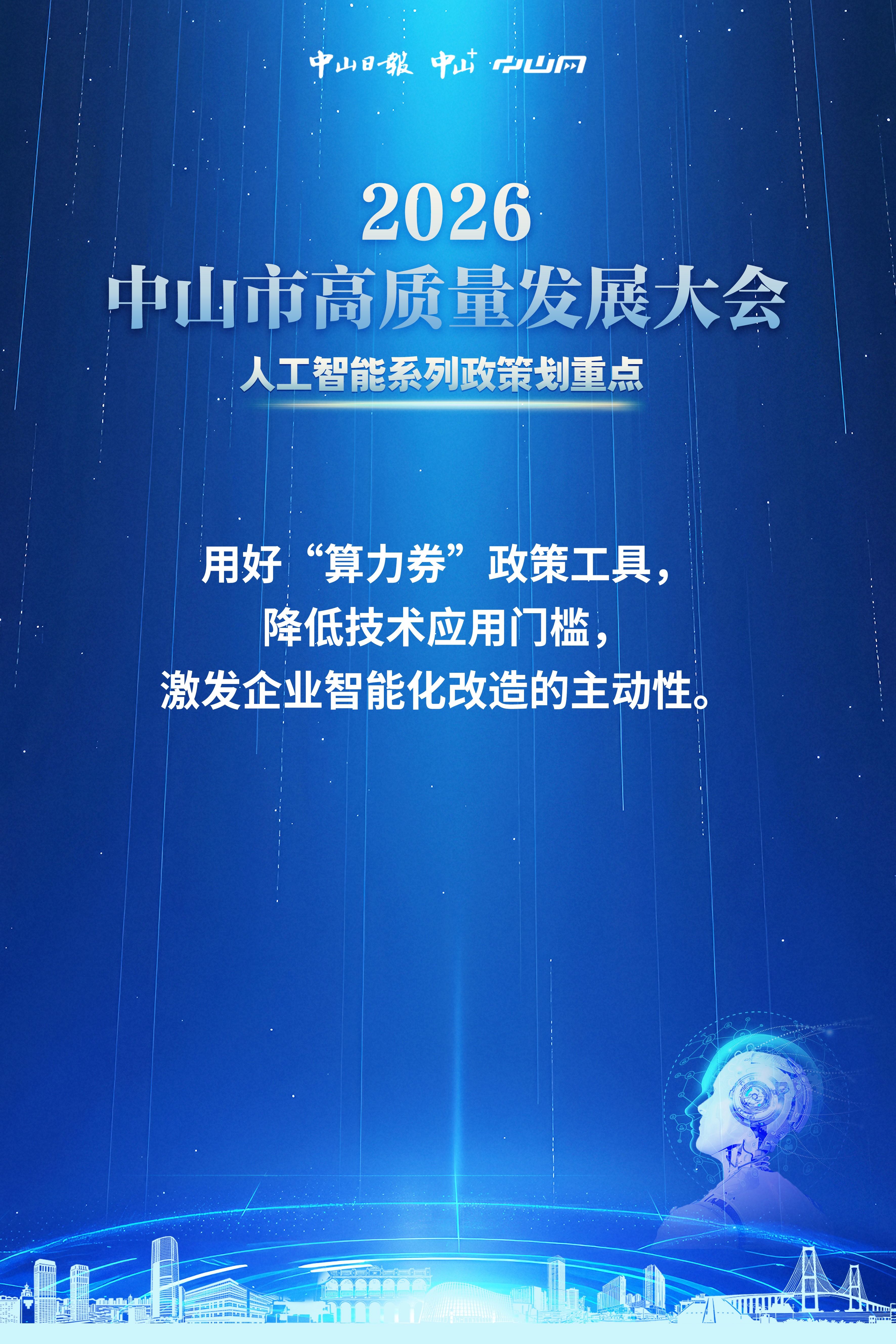 2月24日下午,2026年春節(jié)假期后開工第一天,中山召開全市高質量發(fā)展大會,會上發(fā)布了人工智能系列政策,具體有哪些重要內容?一組海報帶你劃重點↓↓↓