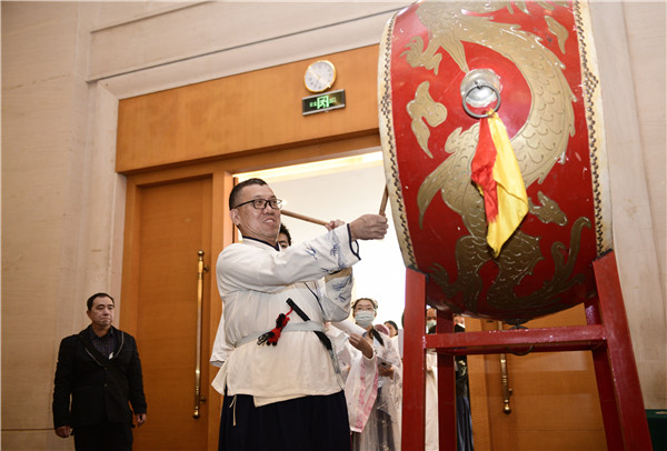活動(dòng)在一支輕盈優(yōu)美的油紙傘古典舞中開場,大賽現(xiàn)場布置還原古代文化廟會(huì)的場景,33位踢館作者身著漢服,分三批進(jìn)場。參賽選手進(jìn)場后首先擊鼓三下,而后呈稿,書童接稿后,再傳給臺上踢館賽評委。